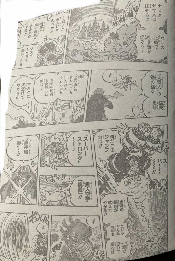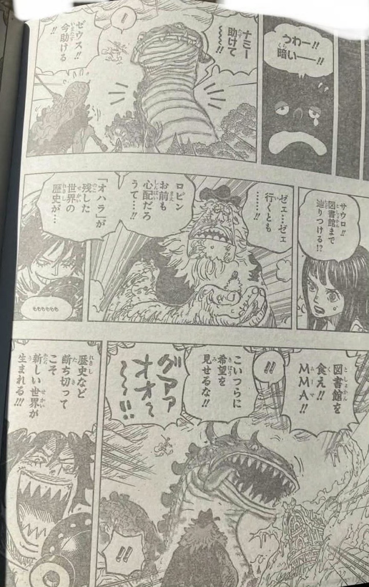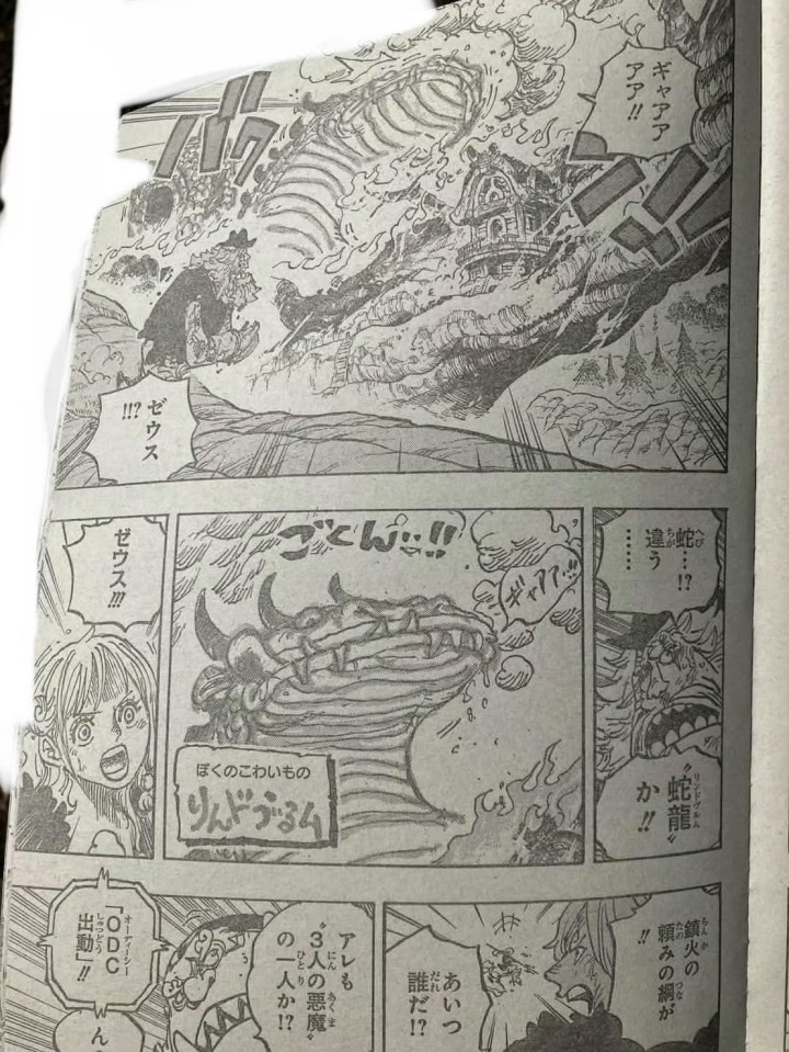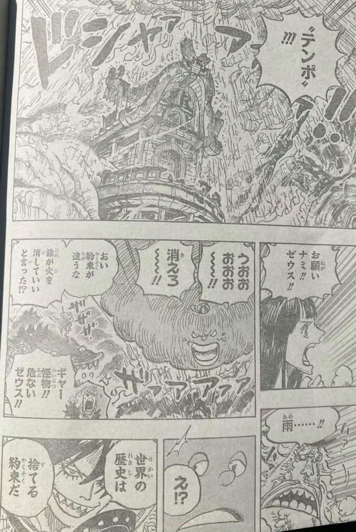 大雨正在覆盖图书馆和学校,这是宙斯下的雨,麒麟戈姆圣出现在学校附近,他看到了宙斯在下雨。麒麟戈姆圣马上让梦魇怪物对付宙斯,宙斯没有反应过来,他就被梦魇怪物吃了。草帽一伙瞬间傻眼了,他们也看到了麒麟戈姆圣。